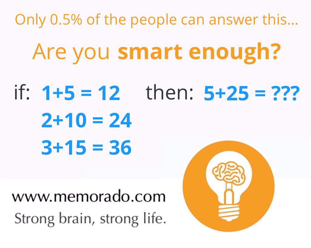 The test is frequently used in the areas of pedagogy, group dynamics. Test your brain for free; I want to remember names better. Tes iq memorado terdiri dari 18 soal/pertanyaan yang harus kamu jawab dengan cepat. How old will john be when he is seven times as old as his nephew today? A stronger brain leads to a better life. Time is essential, as it will reflect in your final score, but don't let that pressure you. She can only carry 5 in her bag. Tes ini hanya menghabiskan waktu sebentar namun tetap memberikan anda perkiraan yang baik tentang iq anda sebenarnya. Our original iq test is the most scientifically valid free iq test available online today. Iqtestanswers memorado iq test answers. Try searching for a popular competing website, and look at their similar sites for opportunity ideas. The memorado quick iq test is floating around facebook recently and i'm sure many of you have taken it or seen someone who has.